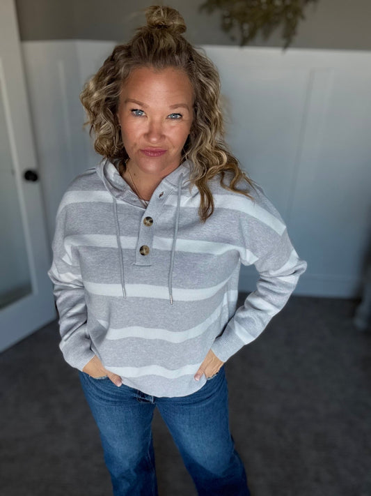 Brighton Top- Grey White