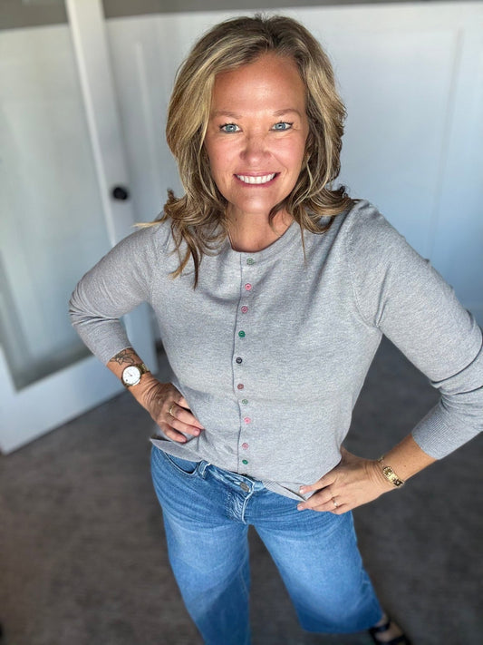 Della Cardigan-Taupe Heather