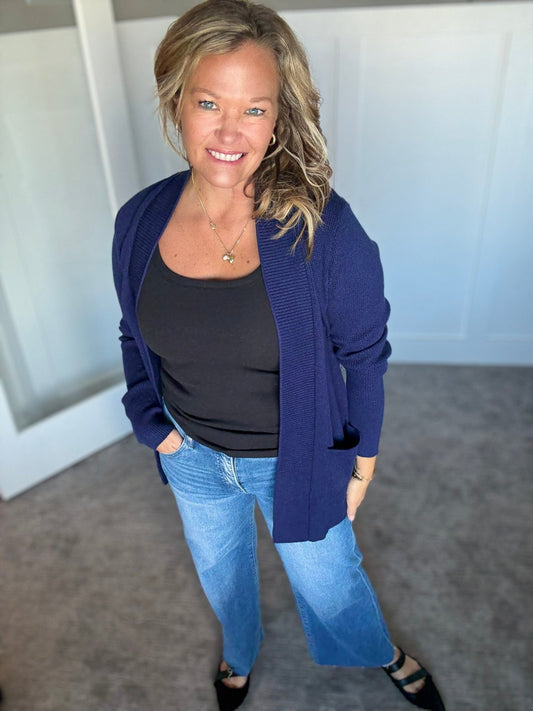Waffle Cardi - Navy