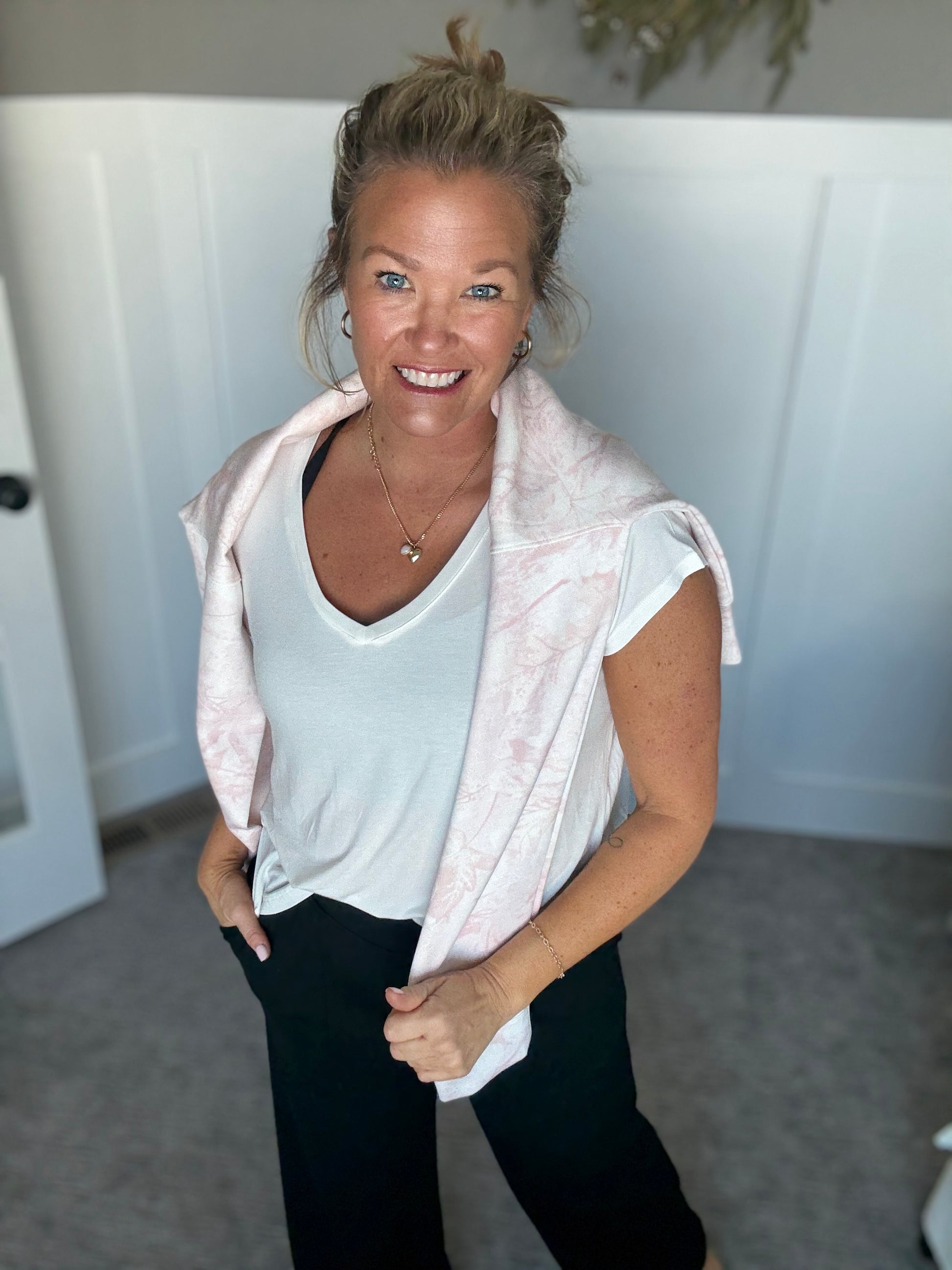 A solid v neck tee that would be perfect to have as a staple in your closet! Fit is true to size. Fit is true to size.