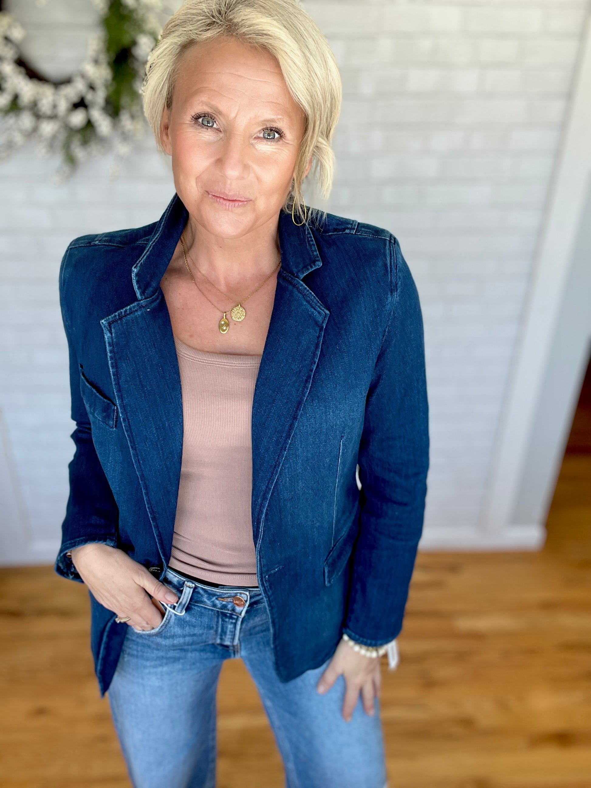 A different neckline makes this one stand out. It features a square neck & short sleeves with mini ribbing throughout. Fit is close to the body but not tight.