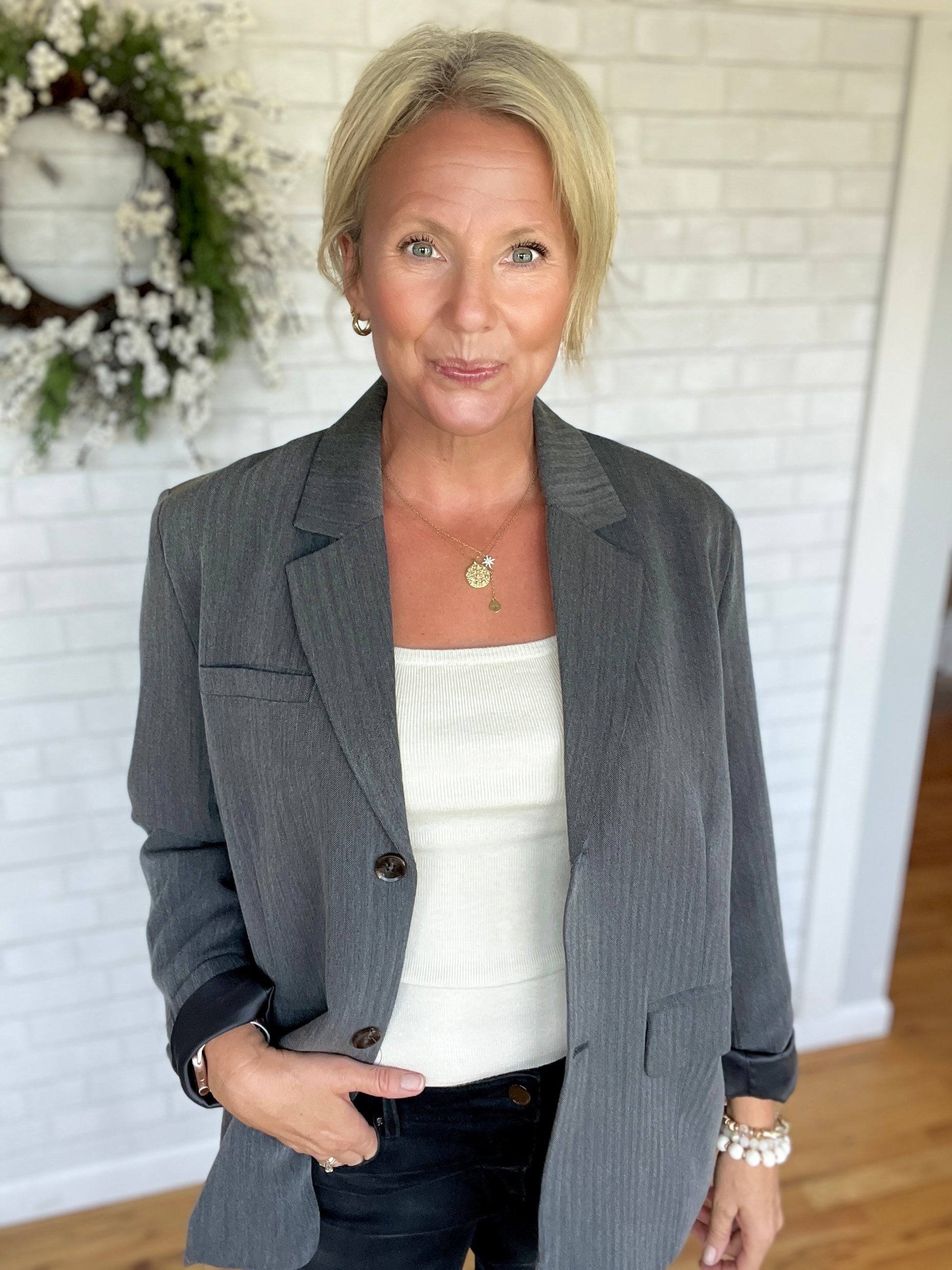 A fine knit tank with a swoop neck feature. This one is a bit of a tighter fit. Size up to get a more looser fit.