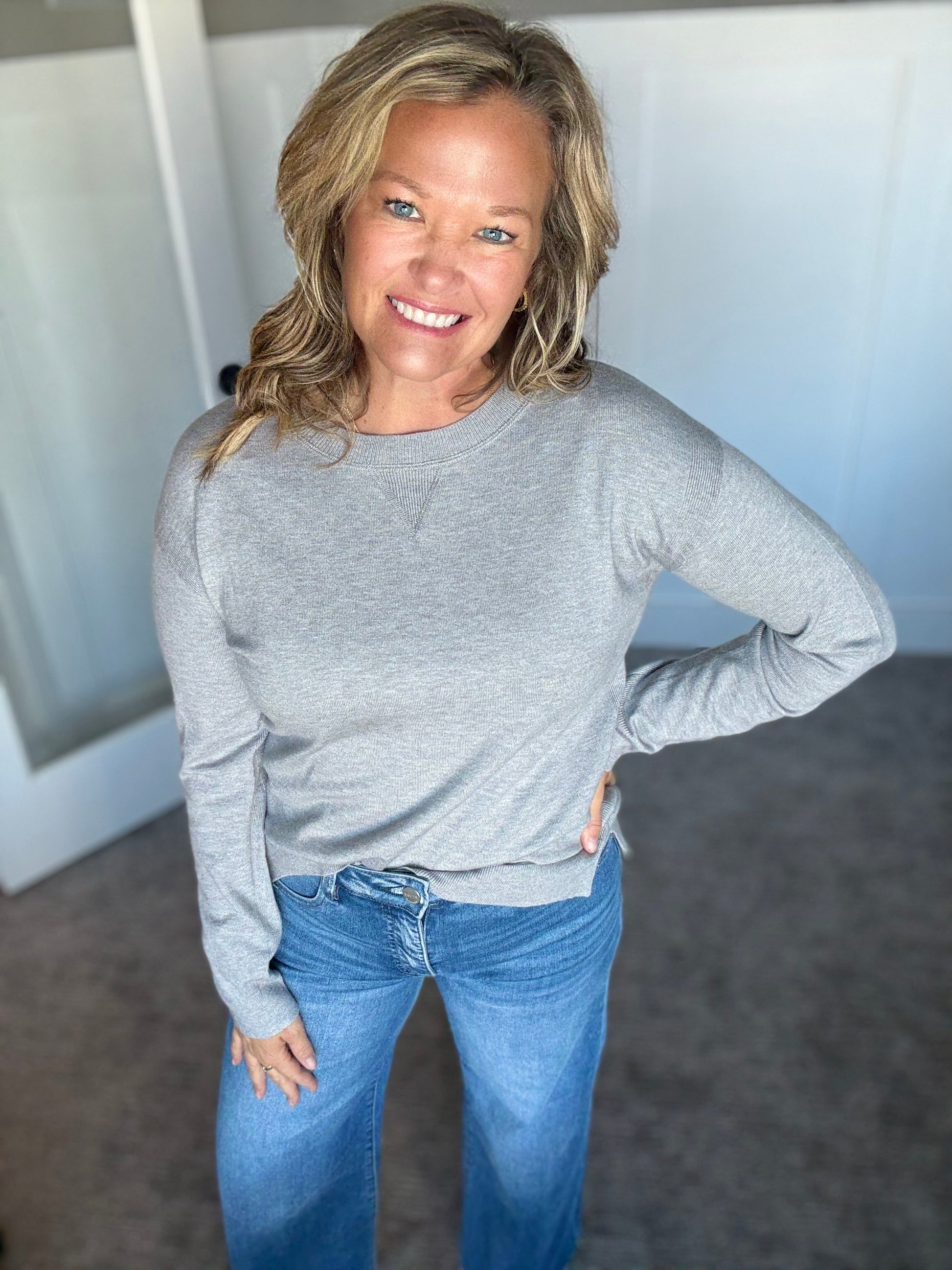 This sweater is similar in feel to our Plush and Enough sweaters - super soft to the touch! It features a crewneck with a ribbed seam down the back and ribbed triangle inset at front. Find the color you want and wrap up in this one. Fit is easy.