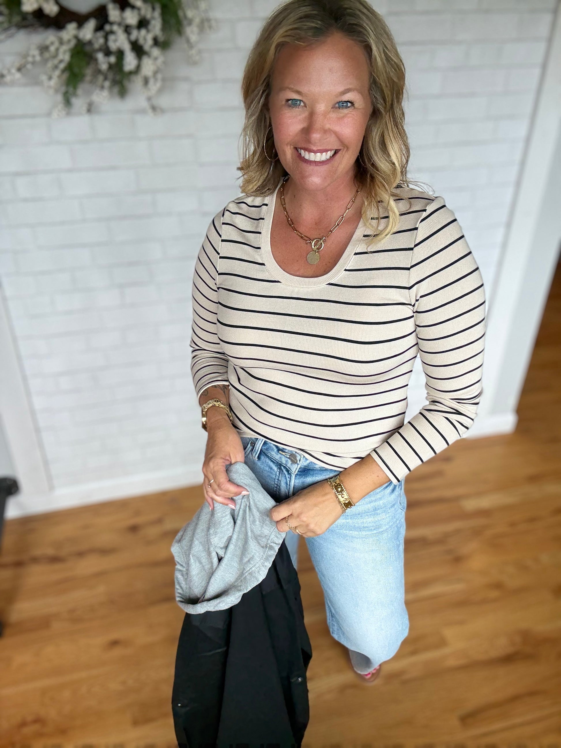 Add a classic touch to your tops collection with this essential long sleeve tee featured in a relaxed fit with a scoop neckline for added shape.