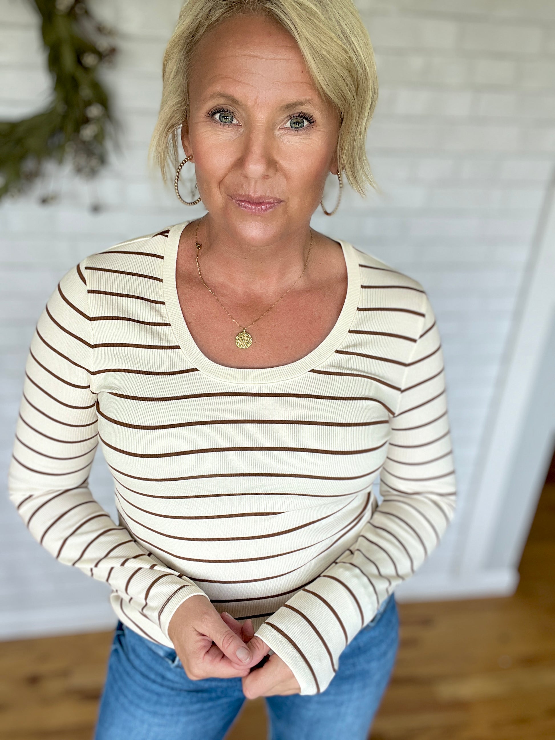Add a classic touch to your tops collection with this essential long sleeve tee featured in a relaxed fit with a scoop neckline for added shape.