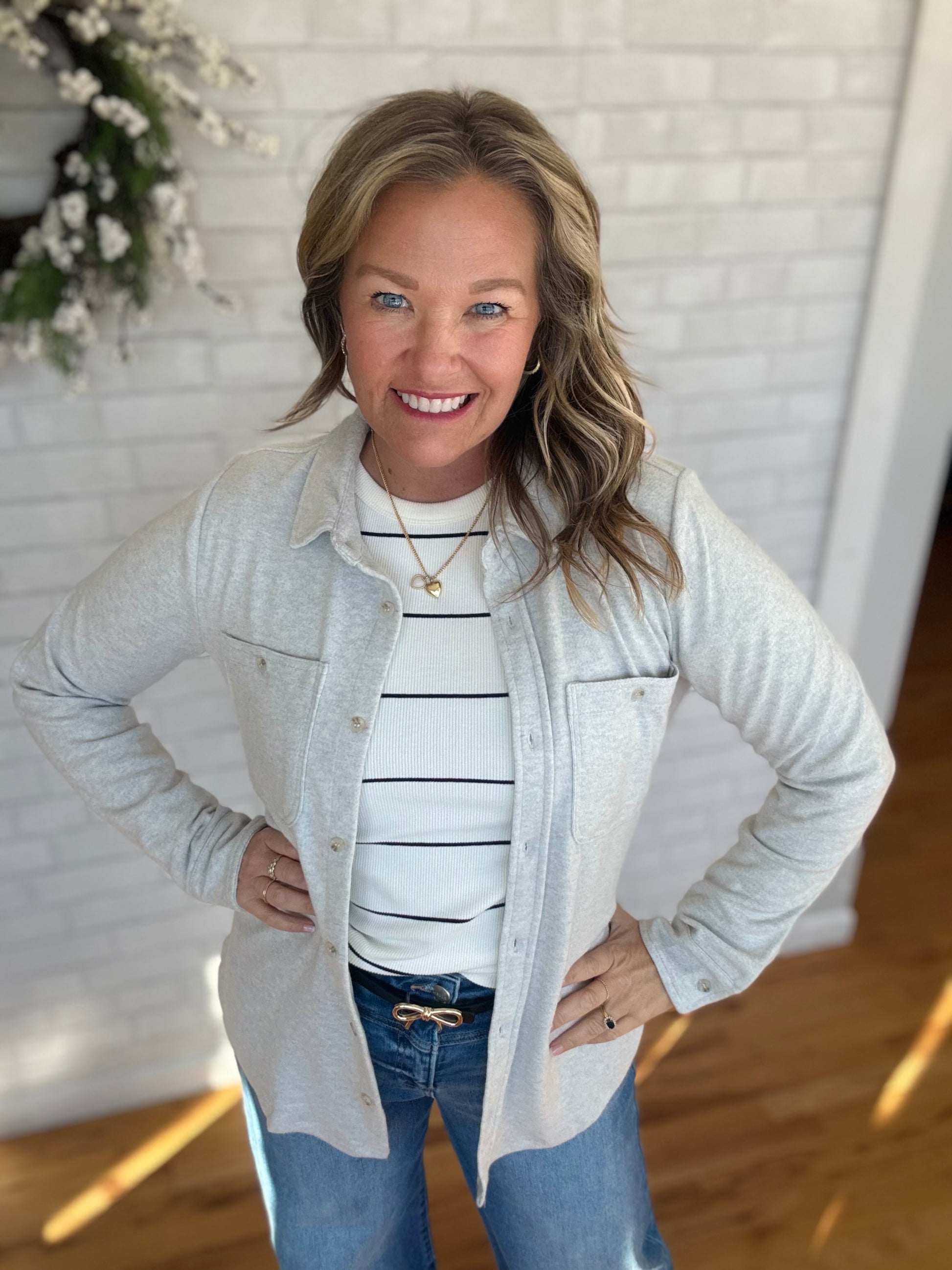 Your favorite top for the season is back in new colors! The Lewis Top is effortlessly cool, super soft and comfy. Perfect for an easy casual look with its relaxed fit. Featuring button front closure and front pockets. Wear it buttoned up or un-buttoned, layered over your favorite tee. Collared neckline, Button front closure, & Dual chest pockets.