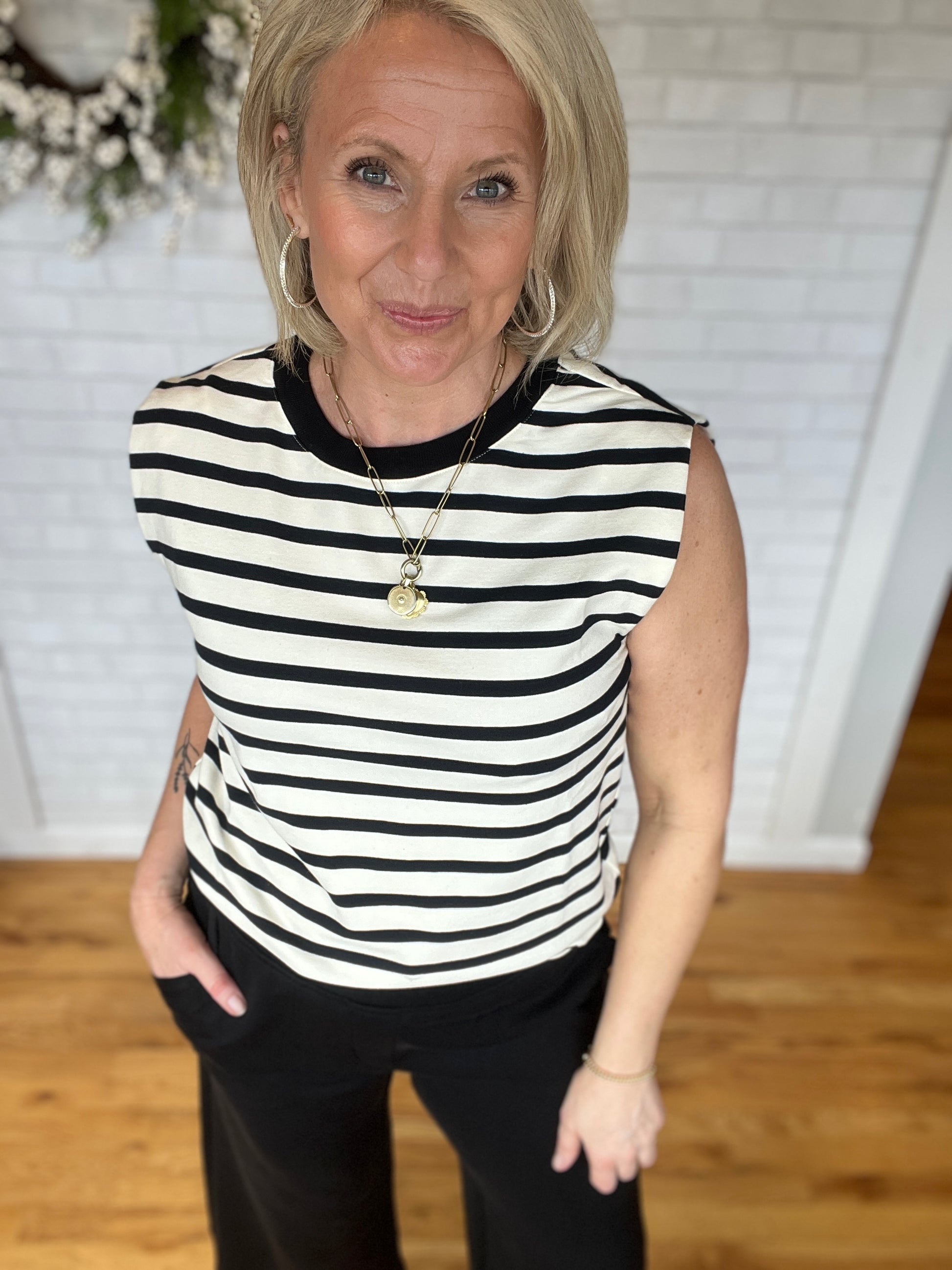 A sweatpant so soft you can leave the house feeling put together + comfy, featured in our super comfy scuba fabric with an elastic waistband and dual side pockets. Wear with our Mildred Shirt to complete the matching set.