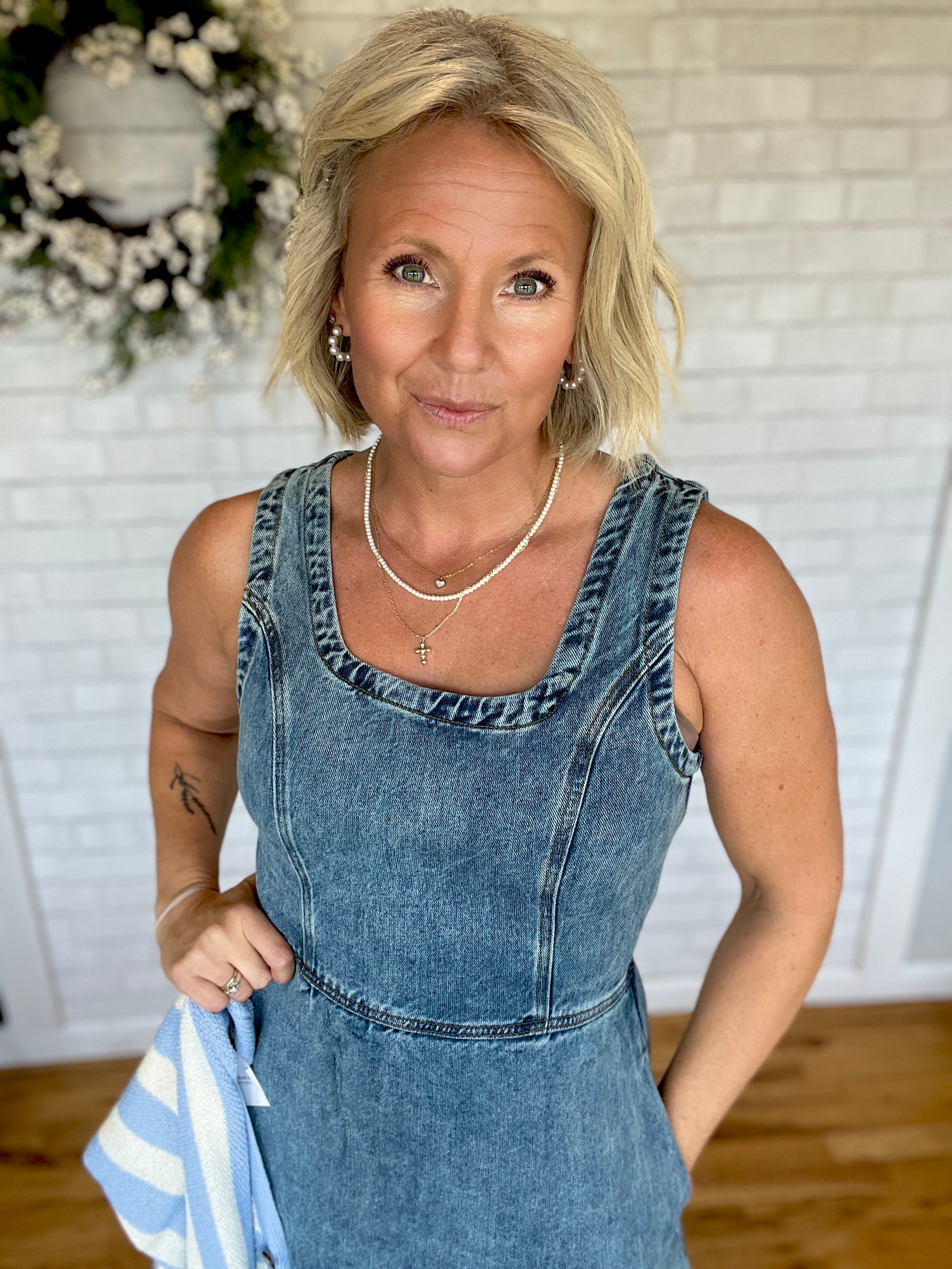 Easy cotton dress from our Spring collection featured in a relaxed silhouette with a back zipper closure and side pockets.
