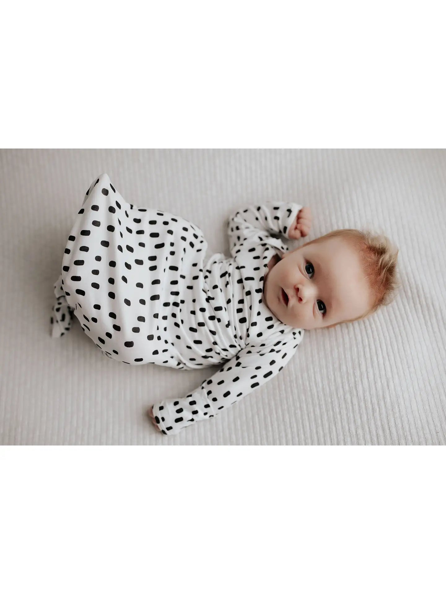 Newborn Baby Knotted Gown - Black/White Dot/ 0 to 3 mos.