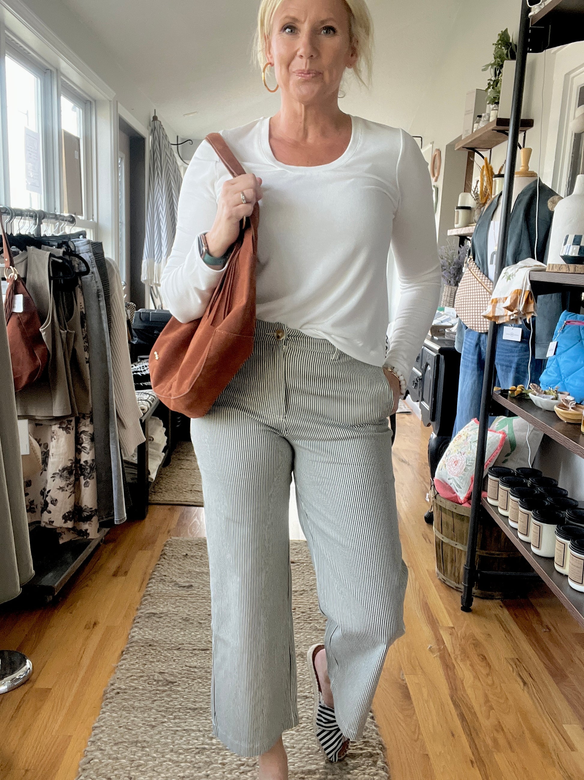 STRIPED WIDE-LEG PANTS - BELT LOOP - BUTTON AND ZIP CLOSURE - ELASTIC BACK WAISTBAND - POCKETS
