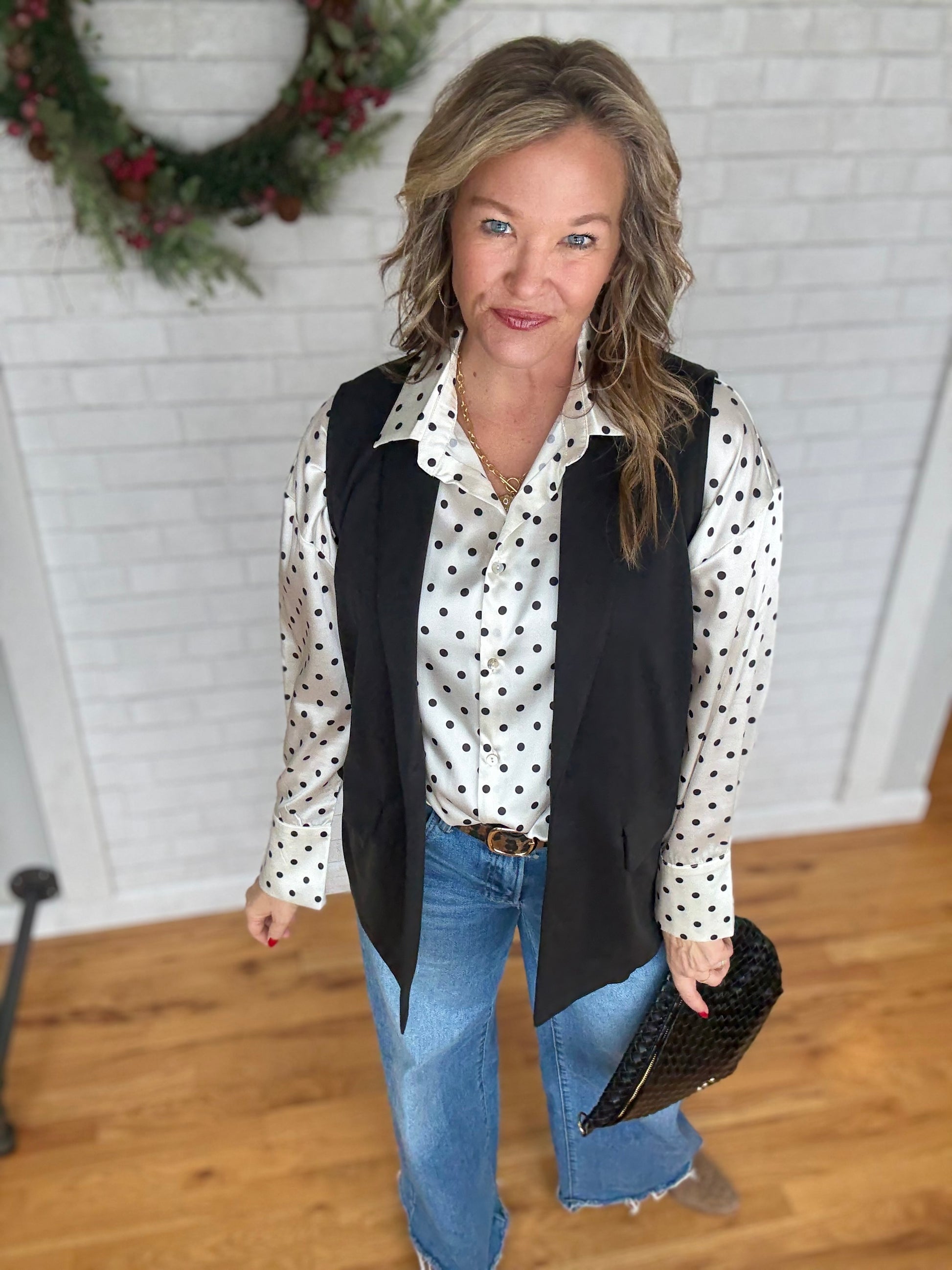 SHAWL NECK OPEN FRONT KNIT VEST BLAZER W/ FRONT FLAP POCKET - Features a stylish shawl collar neckline for a sophisticated touch - Crafted from a soft, comfortable knit fabric for all-day wear - Includes functional front flap pockets for added utility and style - Open front design, perfect for layering over tops and blouses