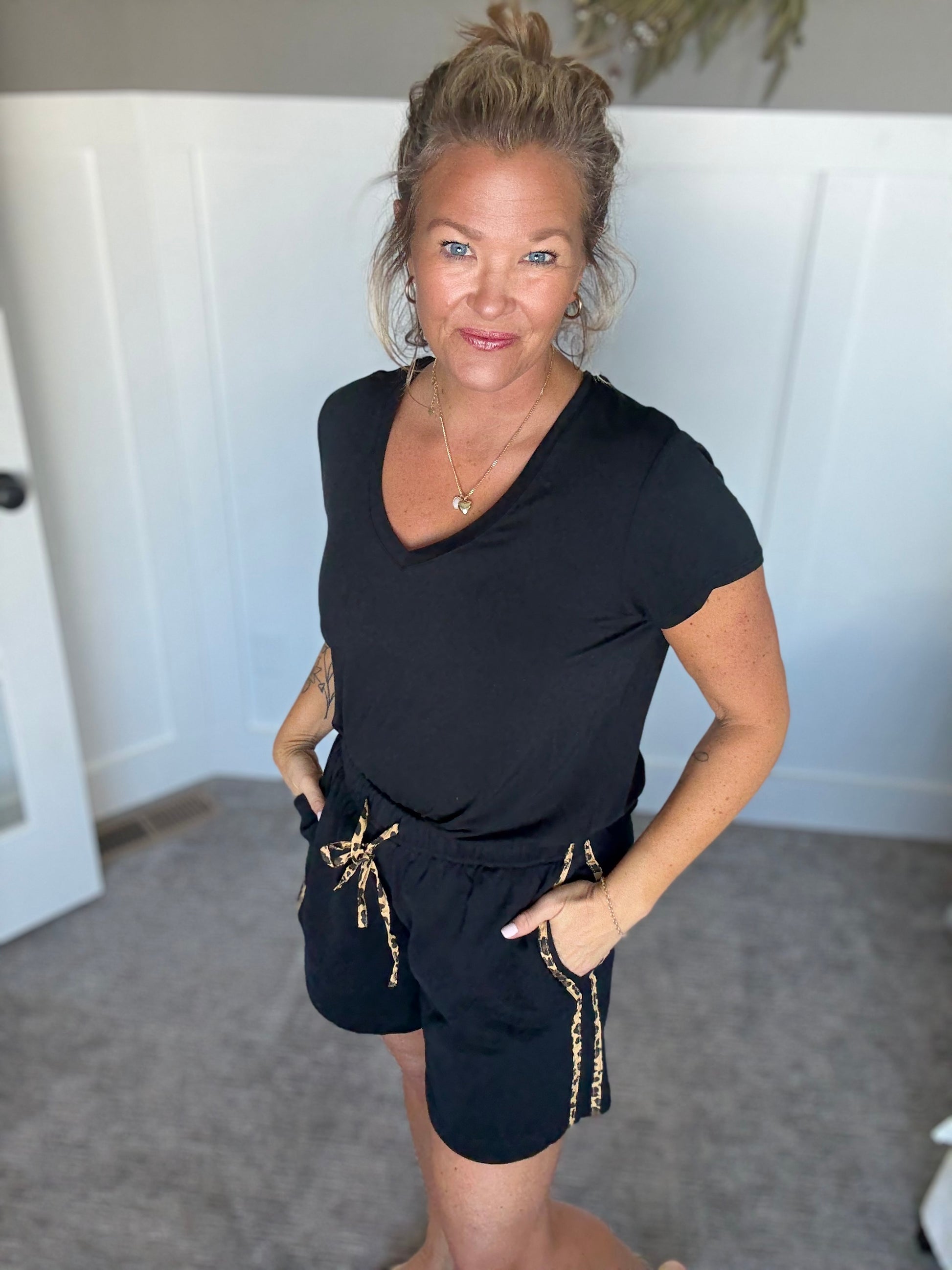 SIDE leopard STRIPE SHORTS - ELASTIC WAISTBAND WITH DRAWSTRING - SIDE SLITS AND POCKETS