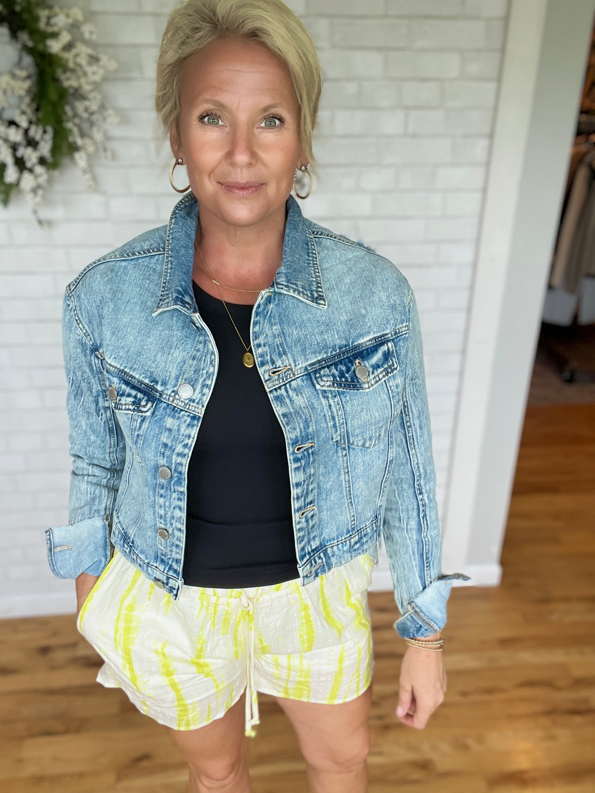 You just found your new favorite denim jacket. It has a hi-low ("step"), with a mixture of finished and l raw hems. The cuff mimic the look. Fit is true to size.